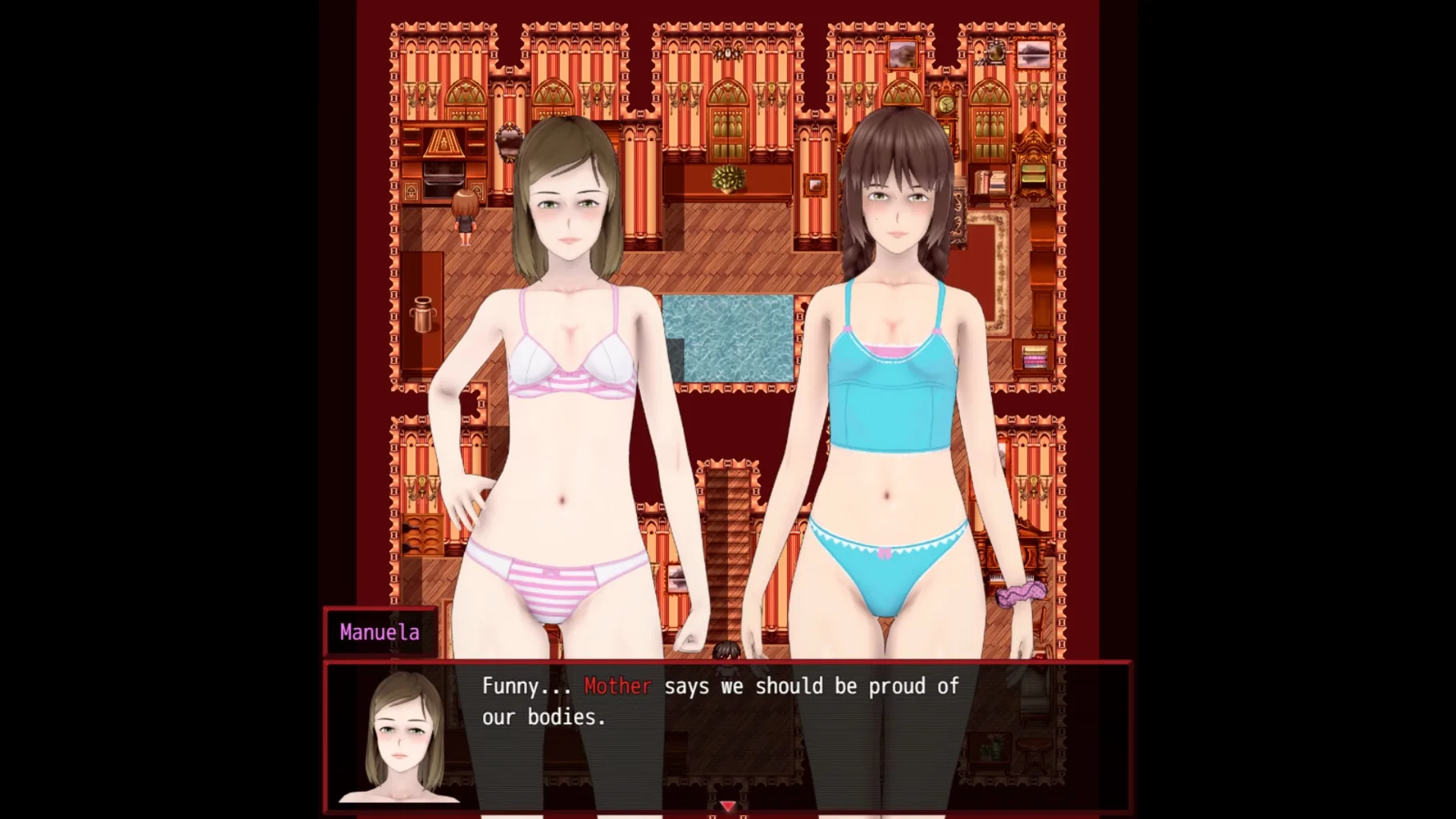 One day, you wake up in a strange, old house that looks like something out of an old novel or TV show. For better or worse, you're not alone; you're accompanied by your childhood best friend and the two most popular girls in your class. In your new house lives a beautiful woman who calls herself "Mother." Is she evil? Has she kidnapped you? What does she want with you? Now you have to learn to live with your classmates! You must forge strong relationships and investigate the strange place to find out what's going on!