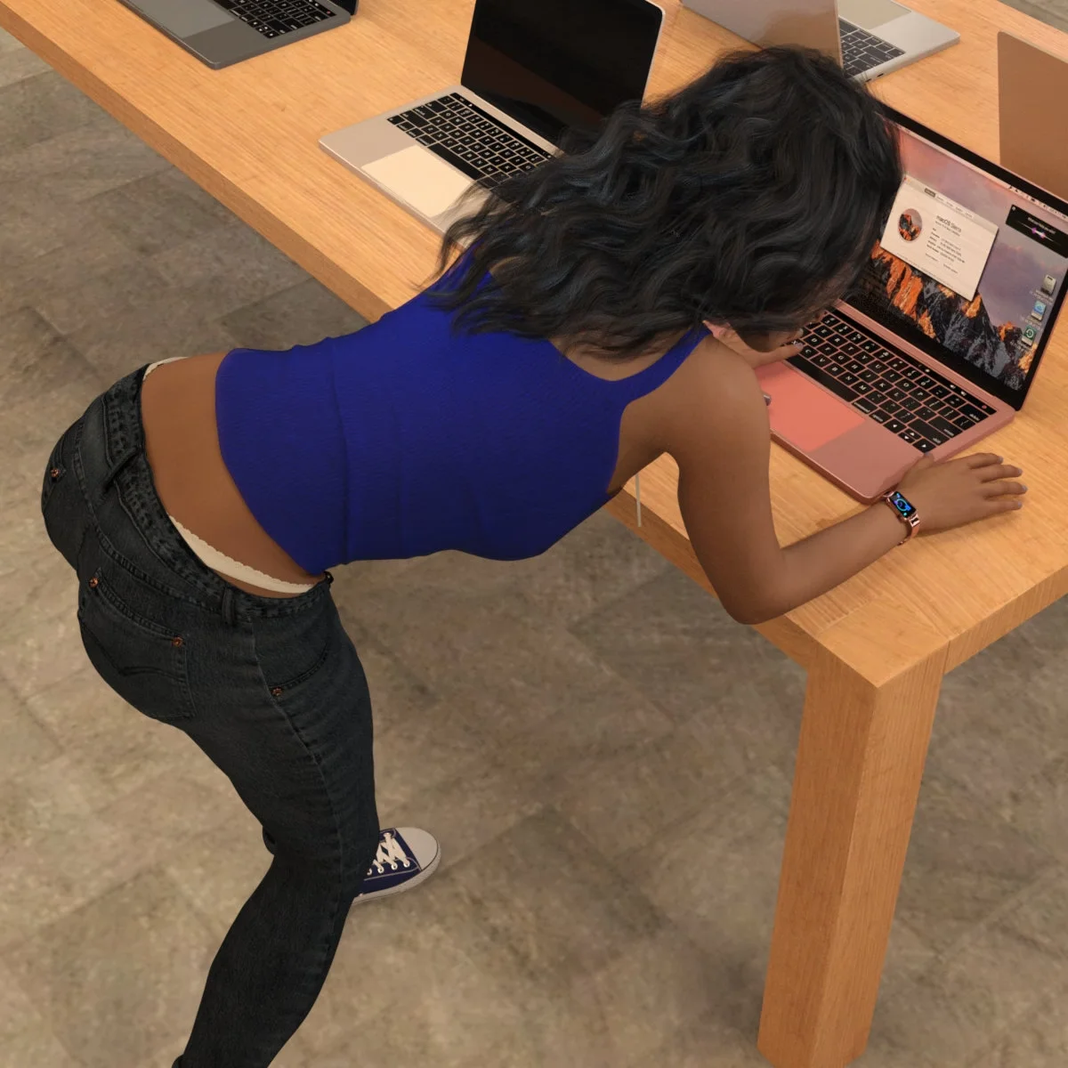 This game moves at quite a pace as I have little energy to render non-spicy shots! Best to imagine an alternate universe where nudity is less taboo or something.