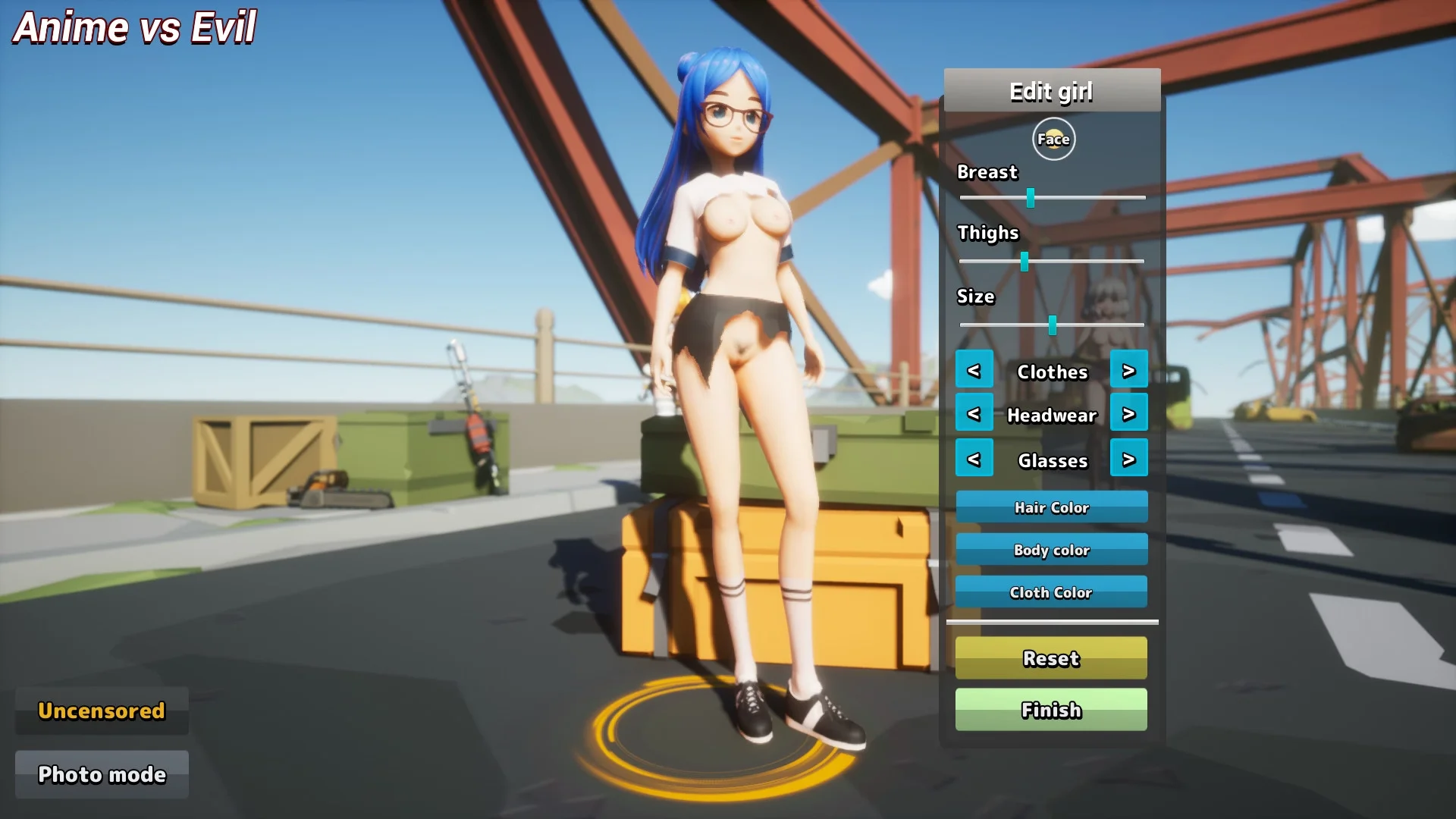 Anime vs Evil: Apocalypse is a dynamic zombie action game with cute anime girls in the main roles. You will have to save the world from hordes of bloodthirsty monsters, controlling one of eight unique girls in short skirts. In the arsenal of heroines there are both cold weapons - katanas and chainsaws, and firearms: pistols, automatic rifles, rocket launchers and many other powerful guns that allow you to dismember zombies into pieces. Characters are unlocked as you complete missions, and extensive customization options are available - you can change appearance parameters, choose hair color, skirt length and clothing. Each of the eight girls has her own character and features.