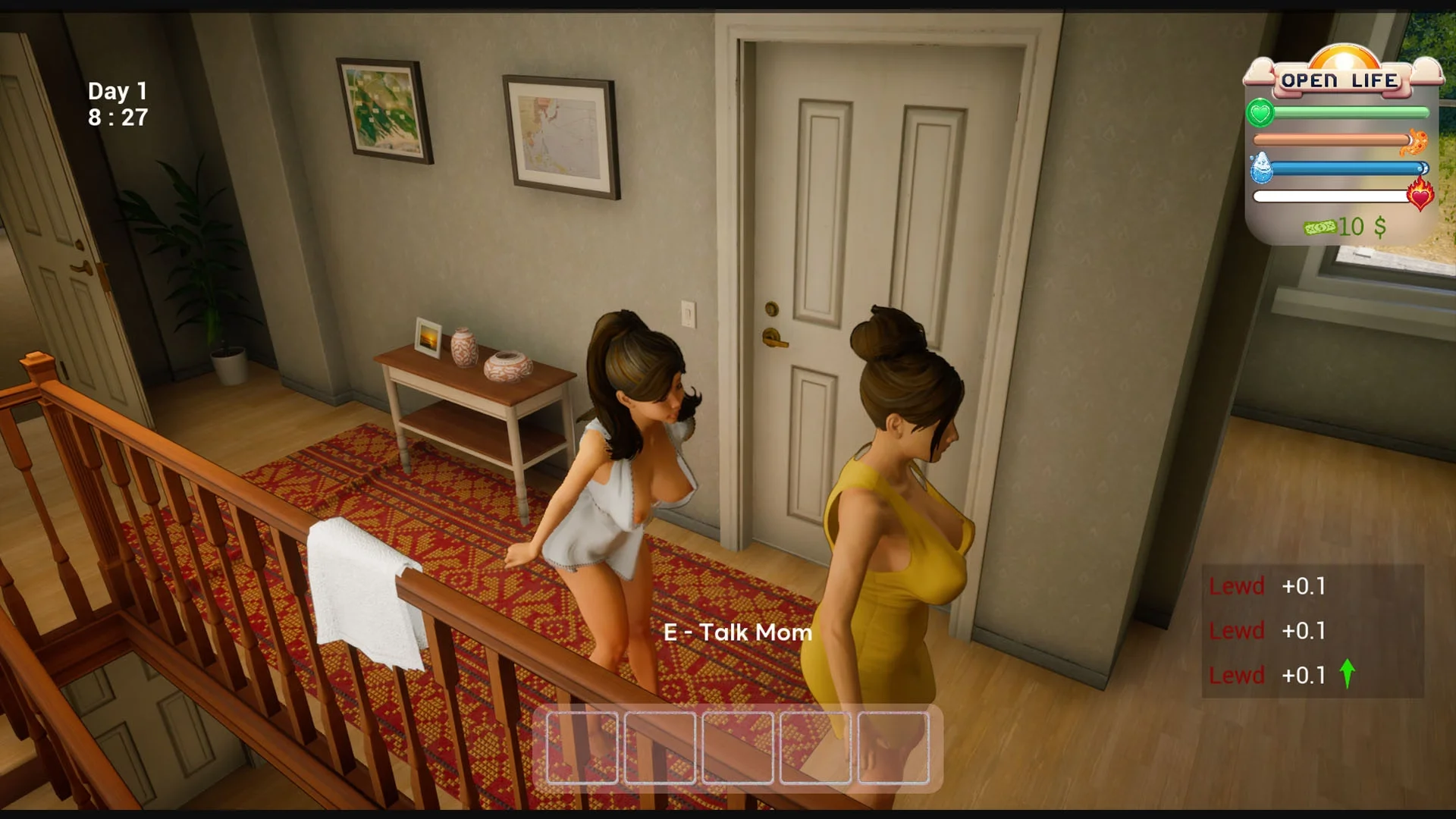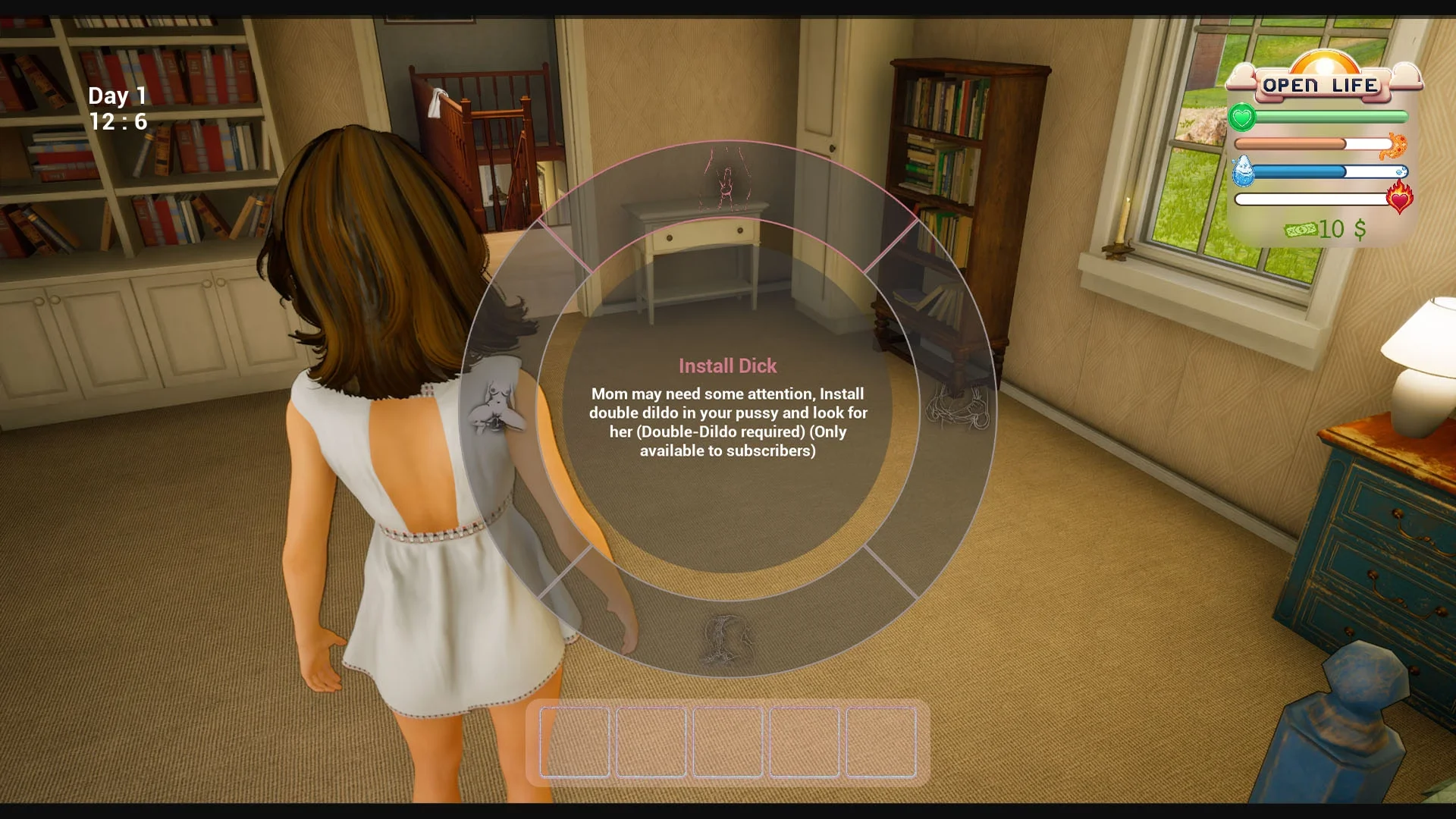 Open Life is a compelling adult taboo simulator that blurs the lines between morality and desire. As an 18-year-old beauty named Lily, your quest begins in a seemingly innocent village household. As you uncover your true nature, immerse yourself in an erotic web of seduction, manipulation, and forbidden desires. Interact with your family members - mom Helen and dad Jack - as they navigate through the challenges brought by your ever-evolving character. Experience the thrill of taboo relationships, pushing boundaries beyond conventional limits, and redefining what it means to be a perverted young woman.