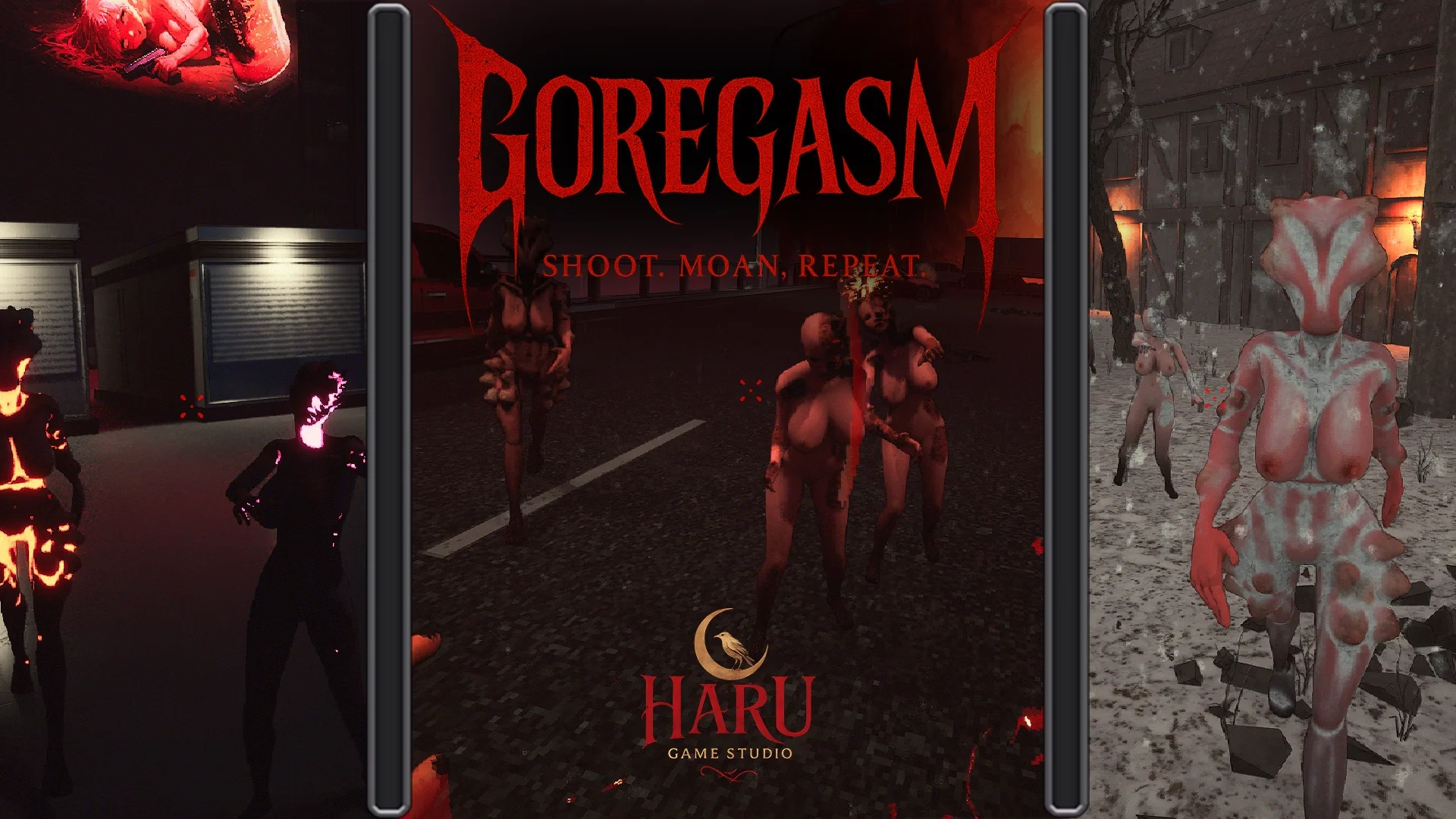 GOREGASM is an intense retro-style wave & rounds shooter that blends brutal action, grotesque horror, and NSFW elements into one depraved experience.