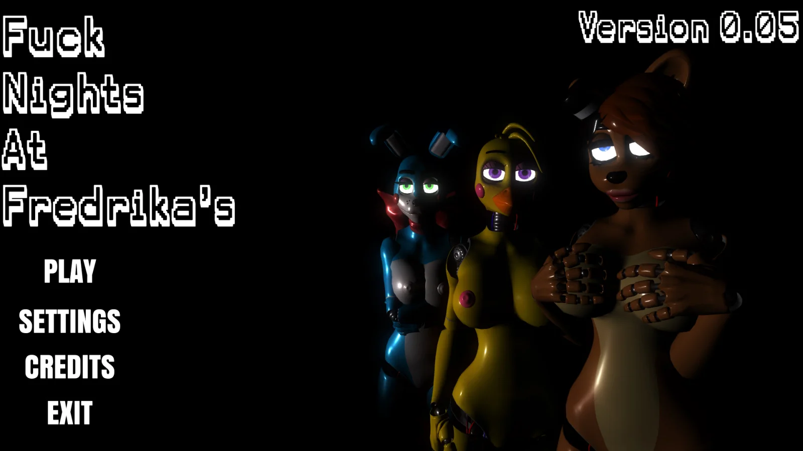 Fuck Nights at Fredrika's is a pornographic parody of Five Nights At Freddy's. The goal of the game is to protect yourself from animatronics with faulty AI.